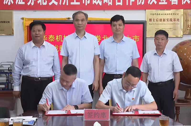 7月,一個驕陽似火的季節,一個充滿熱情與陽光的月份,在抓住月末幾天的好風光時,河南華泰糧油機械股份有限公司傳來了一個好消息:7月24日上午,華泰糧油機械股份有限公司與中原證券北交所正式簽署上市戰略合作協議,縣委副書記、縣長王軍華,中原證券總裁李昭欣、副縣長顧建宇參加簽署儀式。