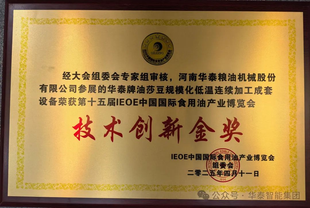 "技術創新獎"的獲得,既是對華泰二十年如一日堅持創新驅動的肯定,更是對未來征程的期許。華泰將秉承“誠信、創新、卓越、共贏”的企業精神,持續以硬核科技賦能產業升級,與全球合作伙伴共建開放、協同、可持續的糧油產業新生態,讓世界見證中國糧油裝備的智慧與力量。