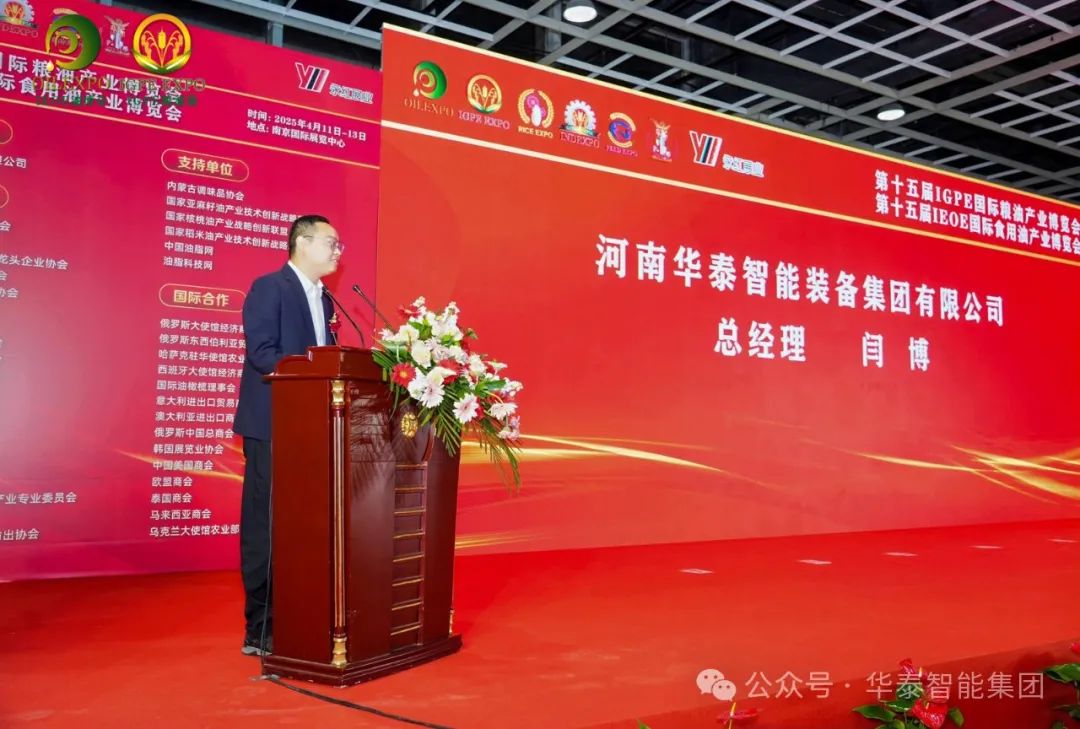集團黨委書記、總經理閆博在主題演講《創新驅動發展 智造賦能未來——攜手共創食用油產業新篇章》中系統闡述產業轉型洞察:"全球食用油產業正從規模擴張轉向質量效益升級,華泰將以本次獲獎為起點,深化'技術+生態'雙輪驅動戰略。"他提出構建"三鏈融合"發展模型:以自主創新突破技術鏈,以開放合作延伸產業鏈,以綠色智造提升價值鏈,加速中國糧油裝備與國際標準對接。