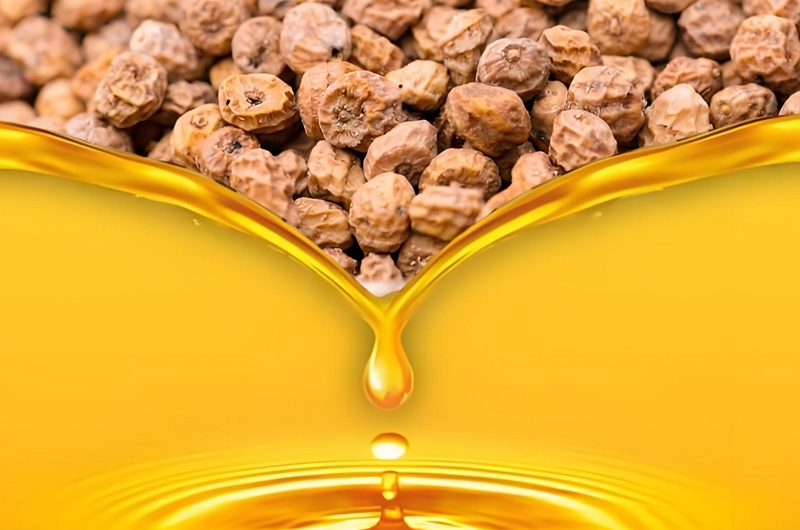 油莎豆油脂含量高達35%左右,因其富含不飽和脂肪酸(飽和酸20%、油酸64%、亞油酸11%、亞麻油酸2%),品質好,因此與橄欖油和杏仁油相媲美。油莎豆的出油率比較客觀,每公頃油莎豆可產1200-1800 kg油脂,其單位面積油脂產量是大豆的4倍,油菜的2倍,花生的1.5倍,得到的油脂油酸含量70%以上,與高油酸花生油很接近,是種營養價值較高的食用植物油。那么油廠在生產油莎豆油時,都需要用到哪些設備呢?一起來了解一下吧!