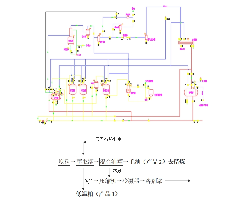 三、亞臨界低溫萃取工藝流程圖(5m3萃取罐圖例)